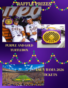 Grab raffle tickets and enter for door prizes like Alabama vs. LSU tickets + a parking pass or a purple & gold Turtlebox ππ―